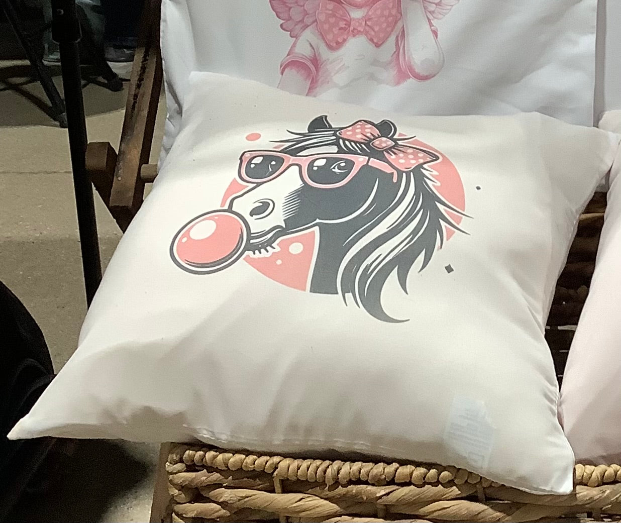 Horse bubble gum pillow 15x15 cover with pillow